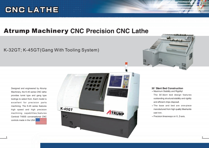 TRUM币MACHINERYPrecision CNC LatheATRUMP MACHINERYTRUMPMachinery Inc.670 Union Ave.Pomona Ca 91768Phone:909-623-6887 Toll Free:1-877-4-AtrumpFax:909-922-7596K-32GT;K-45GT(Gang With Tooling System)Email:sales@atrump.comWebsite:www.atrump.com