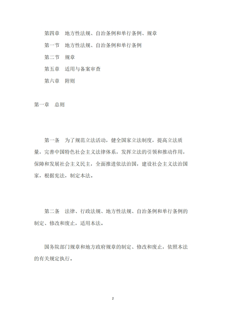 中华人民共和国立法法(2023修正)发文单位:全国人民代表大会文号:中华人民共和国主席令第3号效力范围:全文有效发文日期:2023-03-13生效日期:2023-03-15(2000年3月15日第九届全国人民代表大会第三次会议通过根据2015年3月15日第十二届全国人民代表大会第三次会议《关于修改〈中华人民共和国立法法〉的决定》第一次修正根据2023年3月13日第十四届全国人民代表大会第一次会议《关于修改〈中华人民共和国立法法〉的决定》第二次修正)目录第一章总则第二章法律第一节立法权限第二节全国人民代表大会立法程序第三节全国人民代表大会常务委员会立法程序第四节法律解释第五节其他规定第三章行政法规1