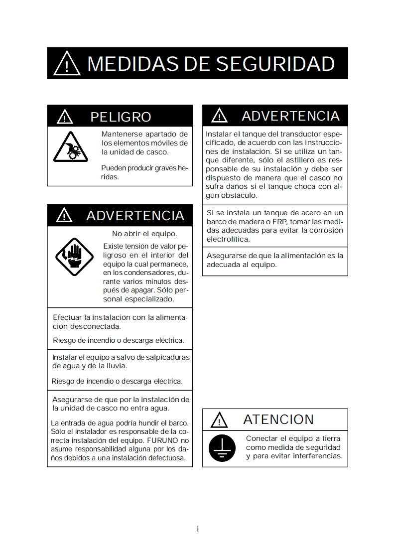 FURUNOManual de InstalacionSONAR EXPLORACION A COLOR FSV24MEDIDAS DE SEGURIDAD...................CONFIGURACION DEL SISTEMA....ALCANCE DEL SUMINISTRO........v1.INSTALACION DEL EQUIPO.1-11.1 Instalacion de la Unidad de Casco...........1-11.2 Instalacion de la Unidad de Presentacion.....1-81.3 Instalacion del Transceptor......................1-141.4 Instalacion de la Fuente de Alimentacion..1-141.5 Puesta del Equipo a Tierra.......1-151.6 Instalacion del Suplemento de Extension (opcional)...1-152.CABLEADO.…….2-12.1 Herramientas de Conexion.........2-12.2 Localizacion de los Conectores2-22.3 Unidad Monitor.2.4 Unidad Procesador..................2-4.2-82.5 Unidad Transceptor..2-142.6 Unidad de Alimentacion .............2-172.7 Unidad de Casco0..…,.….2-173.AJUSTES Y COMPROBACIONES......3-13.1 Comprobacion de la Unidad de Casco...3-13.2Ajuste de Proa..3-43.3 Configuracion de la Marca del Barco....3-63.4 Otros Elementos del Menu SYSTEM.....3-83.5 Ajustes de la placa CONE en el Procesador ..........3-123.6 Configuracion de los Conmutadores DIP.............3-133.7 Comprobacion Independiente TX/RX.3-154.CONEXION DE LA INTERFAZ EXTERNA CS-120A ..................4-1Lista de comprobaciones..AP-1LISTAS DE ENMO.A-1DIBUJOS DE DIMENSIONES.D-1ESQUEMAS ELECTRICOS...........S-1FURUNO ELECTRIC CO.,LTD.NISHINOMIYA,JAPANPRINTED渊PM