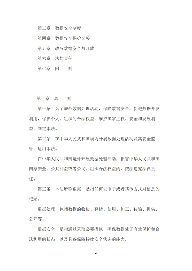 中华人民共和国数据安全法348072@abc3个月前发布关注私信0.15MB12页046中华人民共和国数据安全法此内容为付费资源,请付费后查看¥16¥24黄金会员免费钻石会员免费立即购买您当前未登录!建议登陆后购买,可保存购买订单付费资源 第1页 / 共12页 第2页 / 共12页 试读已结束,还剩10页,您可下载完整版后进行离线阅读 THE END法律法规 文本预览 中华人民共和国数据安全法发文单位:全国人民代表大会常务委员会文号:中华人民共和国主席令第八十四号效力范围:全文有效发文日期:2021-06-10生效日期:2021-09-01《中华人民共和国数据安全法》已由中华人民共和国第十三届全国人民代表大会常务委员会第二十九次会议于2021年6月10日通过,现予公布,自2021年9月1日起施行。中华人民共和国主席习近平2021年6月10日目录第一章总则第二章数据安全与发展1 查看更多 收起部分 喜欢就支持一下吧收藏
