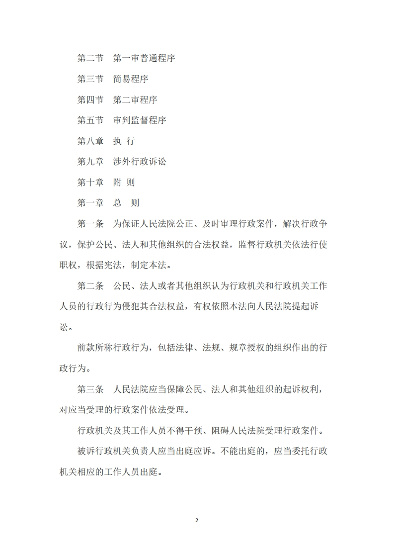 中华人民共和国行政诉讼法(2017年修正)发文单位:全国人大常委会文号:中华人民共和国主席令第71号效力范围:全文有效发文日期:2017-06-27生效日期:2017-07-01(1989年4月4日第七届全国人民代表大会第二次会议通过根据2014年11月1日第十二届全国人民代表大会常务委员会第十一次会议《关于修改〈中华人民共和国行政诉讼法》的决定》第一次修正根据2017年6月27日第十二届全国人民代表大会常务委员会第二十八次会议《关于修改〈中华人民共和国民事诉讼法〉和(中华人民共和国行政诉讼法〉的决定》第二次修正)目录第一章总则第二章受案范围第三章管辖第四章诉讼参加人第五章证据第六章起诉和受理第七章审理和判决第一节一般规定1
