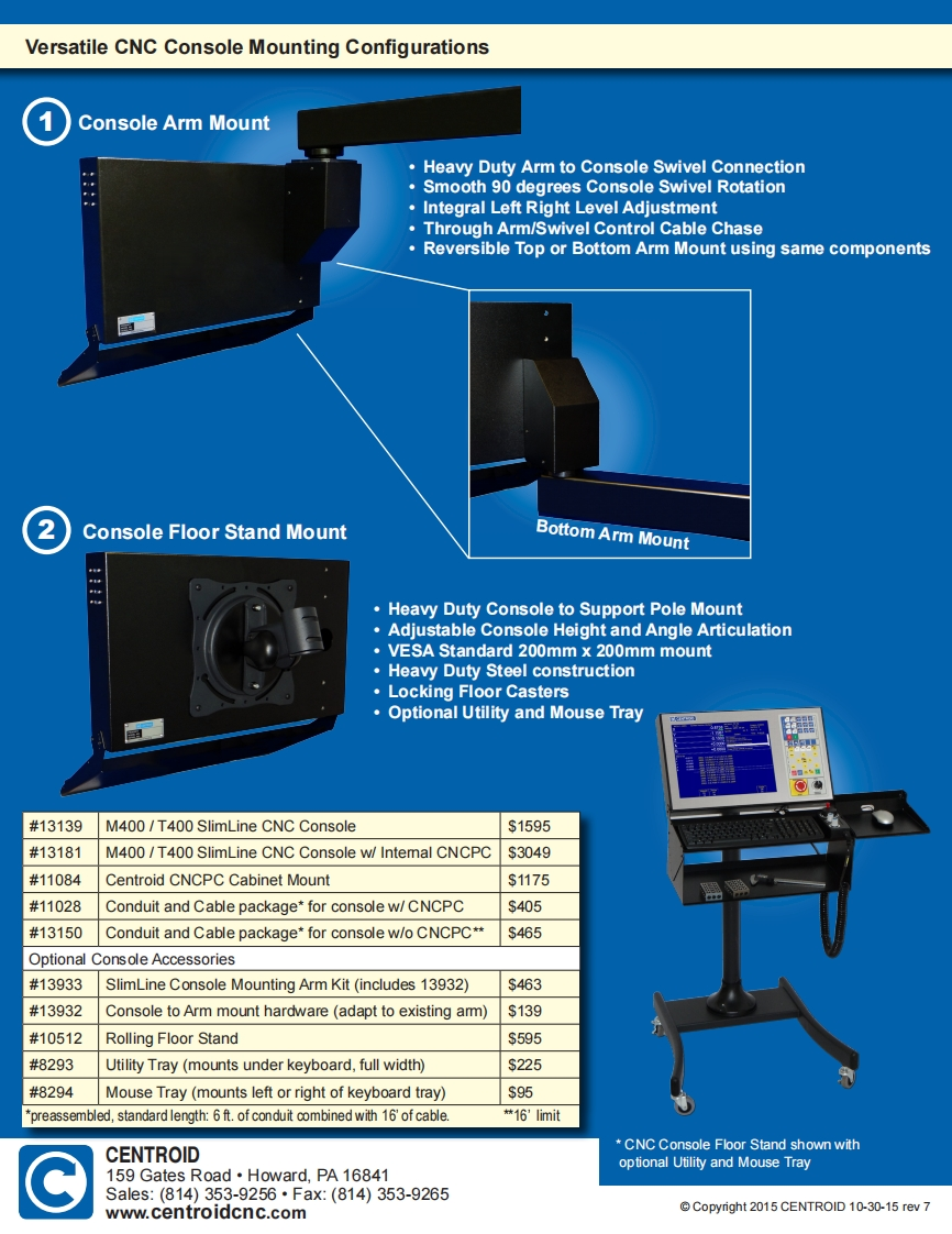 CENTROIDM400/T4005LSlimLine CNC Operators Console73mm©CENTROID2.88”图四阳图闷四臣四-1.1587-0.1000+0.0000+0.0000User Friendly CNC Control InterfaceUser Configurable15”Color LCDAuxiliary KeysTouch Screen Display同CENTHOIDSpindle ControlEthernet Port andCoolant ControlWifi*4 USB PortsHeavy Duty SteelMPG ConnectorConstructionDedicated AxisDurableJog ButtonsPowdercoat FinishEasy to CleanControl SurfacesUSB KeyboardFeedrate Overide(easy replacement,usemost any off the shelfKnobUSB keyboard)E-stopAdjustable angleMade in USAKeyboard traywhen ordered with Internal CNCPC