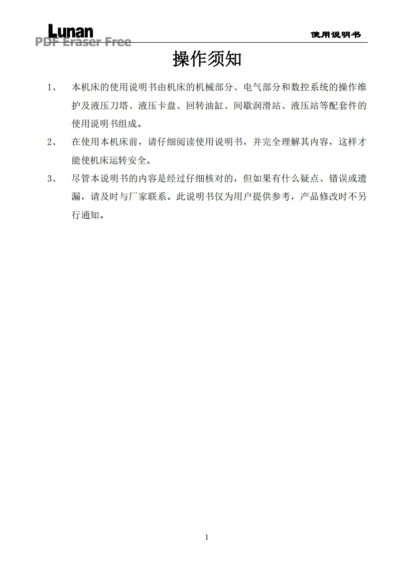 CLK6140S数控车床使用说明书手册348072@abc4个月前发布关注私信0.84MB40页022CLK6140S数控车床使用说明书手册此内容为付费资源,请付费后查看¥17¥25黄金会员免费钻石会员免费立即购买您当前未登录!建议登陆后购买,可保存购买订单付费资源 第1页 / 共40页 第2页 / 共40页 试读已结束,还剩38页,您可下载完整版后进行离线阅读 THE END说明书手册 文本预览 PDF Eraser FreeLunanCLK6140S数控车床使用说明书(机械部分)山东鲁南机床有限公司 查看更多 收起部分 喜欢就支持一下吧收藏