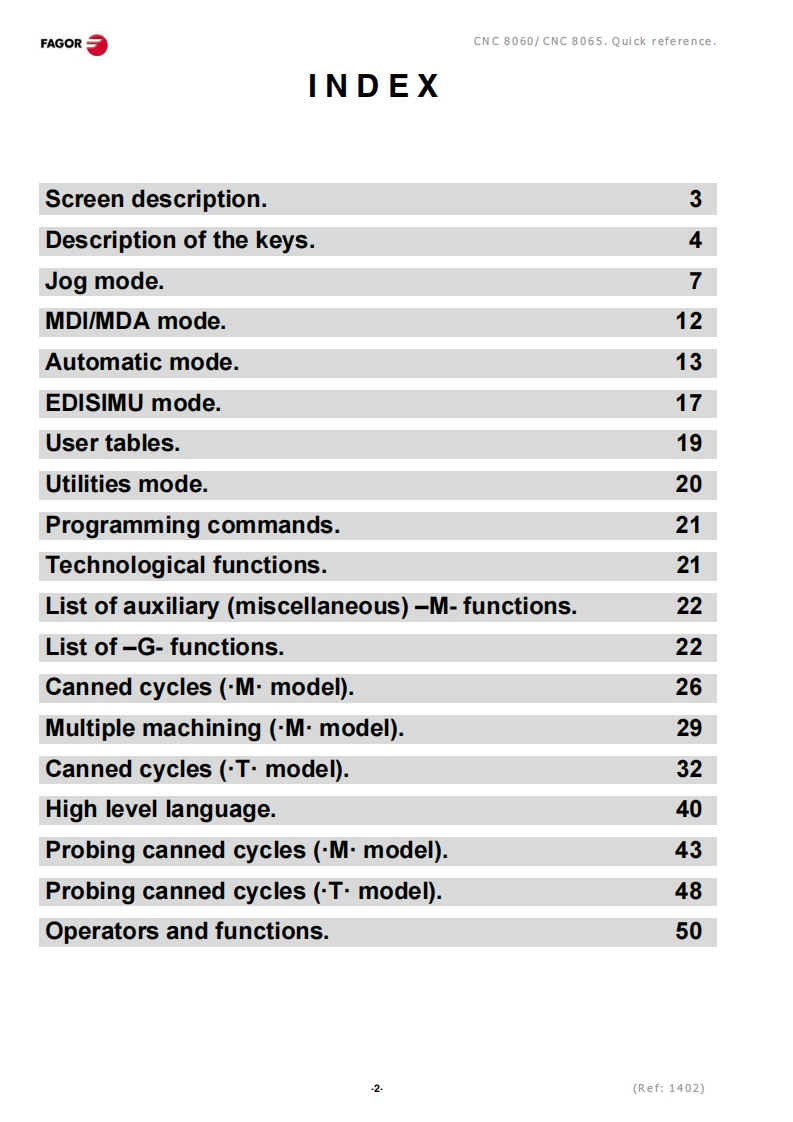 Fagor-CNC-8060-8065-参考说明书手册-English348072@abc4个月前发布关注私信2.46MB52页050Fagor-CNC-8060-8065-参考说明书手册-English此内容为付费资源,请付费后查看¥17¥25黄金会员免费钻石会员免费立即购买您当前未登录!建议登陆后购买,可保存购买订单付费资源 第1页 / 共52页 第2页 / 共52页 试读已结束,还剩50页,您可下载完整版后进行离线阅读 THE END说明书手册 文本预览 CNC8▣6▣8▣65Quick reference(Ref:1402)FAGOR 查看更多 收起部分 喜欢就支持一下吧收藏
