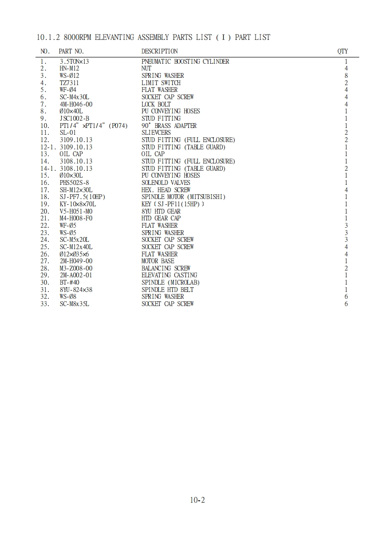 M218Partlist安装调试说明书手册348072@abc4个月前发布关注私信1.10MB32页041M218Partlist安装调试说明书手册此内容为付费资源,请付费后查看¥17¥25黄金会员免费钻石会员免费立即购买您当前未登录!建议登陆后购买,可保存购买订单付费资源 第1页 / 共32页 第2页 / 共32页 试读已结束,还剩30页,您可下载完整版后进行离线阅读 THE END说明书手册 文本预览 10.PART LISTS10.1 8000RPM ELEVATING ASSEMBLY(I)10.1.1 8000RPM ELEVATING ASSEMBLY DRAWING173181920212213②2314241525②283122616827910122930a31323310-1 查看更多 收起部分 喜欢就支持一下吧收藏