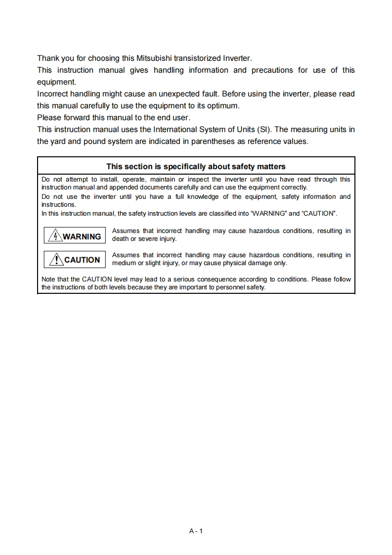 MitsubishiA500安装调试说明书手册348072@abc4个月前发布关注私信2.91MB243页029MitsubishiA500安装调试说明书手册此内容为付费资源,请付费后查看¥17¥25黄金会员免费钻石会员免费立即购买您当前未登录!建议登陆后购买,可保存购买订单付费资源 第1页 / 共243页 第2页 / 共243页 试读已结束,还剩241页,您可下载完整版后进行离线阅读 THE END说明书手册 文本预览 MITSUBISHI ELECTRICFR-A 500Frequency InverterInstruction ManualFR-A520-0.4K-55K-NA)FR-A540-0.4K-55K(-NA)(-EC)Art.No.:6963320010302IB66790-GMITSUBISHI ELECTRIC INDUSTRIAL AUTOMATION 查看更多 收起部分 喜欢就支持一下吧收藏