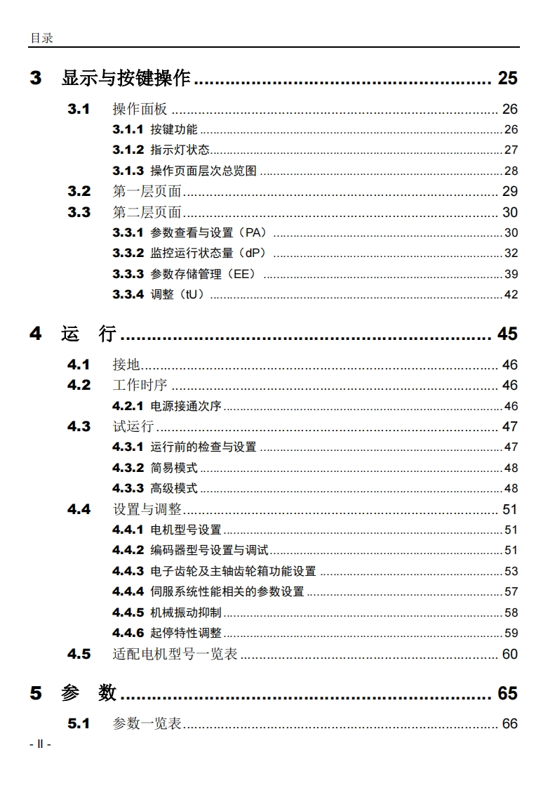 目录目录1规格,。1.1通用规格21.2机种规格31.2.1铭牌说明41.2.2驱动器型号说明.…1.2.3接口板规格说明..61.3安装尺寸…71.3.12.2kW-5.5kW驱动器.71.3.27.5kW驱动器82安装与接线….92.1产品到货时的确认102.2安装场所102.3安装方法.112.3.1驱动器安装112.3.2连接周边设施122.3.3主回路端子的接线.132.3.4断路器、接触器、主回路电缆和制动电阻的选型142.3.5控制回路端子的接线152.4接线检查162.4.1检查项目.…162.5控制回路端子一览表...162.5.1控制器接口XS10..162.5.2数字输出接口XS11.…172.5.3数字输入接口XS12..…182.5.4编码器信号输出接口XS20192.5.5外部编码器信号输入接口XS21202.5.6电机编码器信号输入接口XS22212.6控制回路输入输出接口类型一览表22-1
