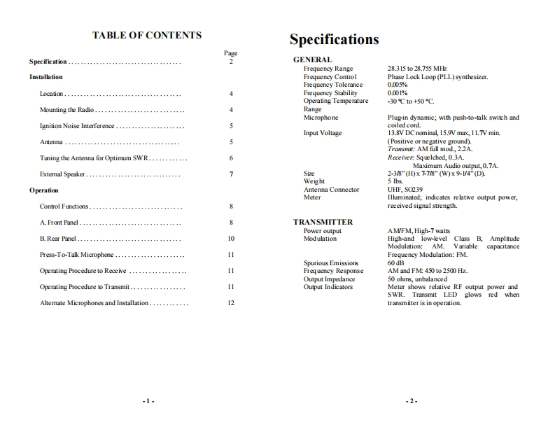 Galaxy_DX44V_使用说明书手册348072@abc4个月前发布关注私信0.11MB8页023Galaxy_DX44V_使用说明书手册此内容为付费资源,请付费后查看¥16¥19黄金会员免费钻石会员免费立即购买您当前未登录!建议登陆后购买,可保存购买订单付费资源 第1页 / 共8页 第2页 / 共8页 试读已结束,还剩6页,您可下载完整版后进行离线阅读 THE END说明书手册 文本预览 GaluxyDX-44V西恋迹迹ō而①Full Channel AM/FM Mobile TransceiverOWNER'S MANUALPrinted In MalaysiaAT3602014DDownloaded from www.cbradio.nlPD000808 查看更多 收起部分 喜欢就支持一下吧收藏