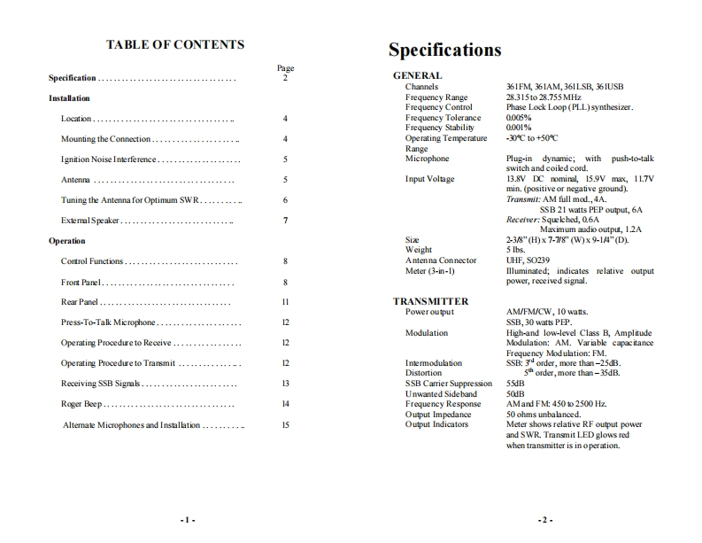 Galaxy_DX99V_使用说明书手册348072@abc2个月前发布关注私信0.13MB10页0268Galaxy_DX99V_使用说明书手册此内容为付费资源,请付费后查看¥16¥19黄金会员免费钻石会员免费立即购买您当前未登录!建议登陆后购买,可保存购买订单付费资源 第1页 / 共10页 第2页 / 共10页 试读已结束,还剩8页,您可下载完整版后进行离线阅读 © 版权声明文章版权归作者所有,未经允许请勿转载。THE END说明书手册 文本预览 GalaxyDX-99V心E4四写4回Full Channel AMFM/SSB MobileBuilt in Frequency Counterwith Roger BeepOWNER'S MANUALPrinted In MalaysiaDownloaded from www.cbradio.nlAT2101012GPD0001006 查看更多 收起部分 喜欢就支持一下吧点赞8 分享QQ空间微博QQ好友海报分享复制链接收藏