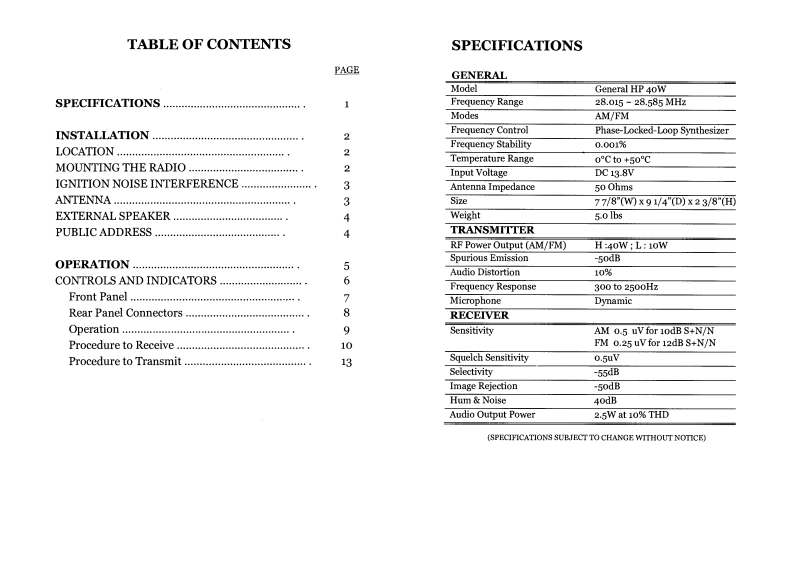 General_HP40W_使用说明书手册348072@abc6个月前发布关注私信0.13MB8页039General_HP40W_使用说明书手册此内容为付费资源,请付费后查看¥16¥19黄金会员免费钻石会员免费立即购买您当前未登录!建议登陆后购买,可保存购买订单付费资源 第1页 / 共8页 第2页 / 共8页 试读已结束,还剩6页,您可下载完整版后进行离线阅读 THE END说明书手册 文本预览 General HP40W=099g40Full Channel AM/FMAmateur Mobile TransceiverOWNER'SMANUALPrinted In MalaysiaA38251614ADownloaded from www.cbradio.nlPD001216 查看更多 收起部分 喜欢就支持一下吧收藏