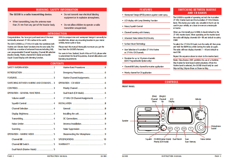 GME_GX300_使用说明书手册348072@abc6个月前发布关注私信0.84MB7页020GME_GX300_使用说明书手册此内容为付费资源,请付费后查看¥16¥19黄金会员免费钻石会员免费立即购买您当前未登录!建议登陆后购买,可保存购买订单付费资源 第1页 / 共7页 第2页 / 共7页 试读已结束,还剩5页,您可下载完整版后进行离线阅读 THE END说明书手册 文本预览 GMEGX30027 MHz MARINEAND CB RADIOCMEgX30040CMEGX30068CH88/PriINSTRUCTION MANUALDownloaded from www.cbradio.nl 查看更多 收起部分 喜欢就支持一下吧收藏