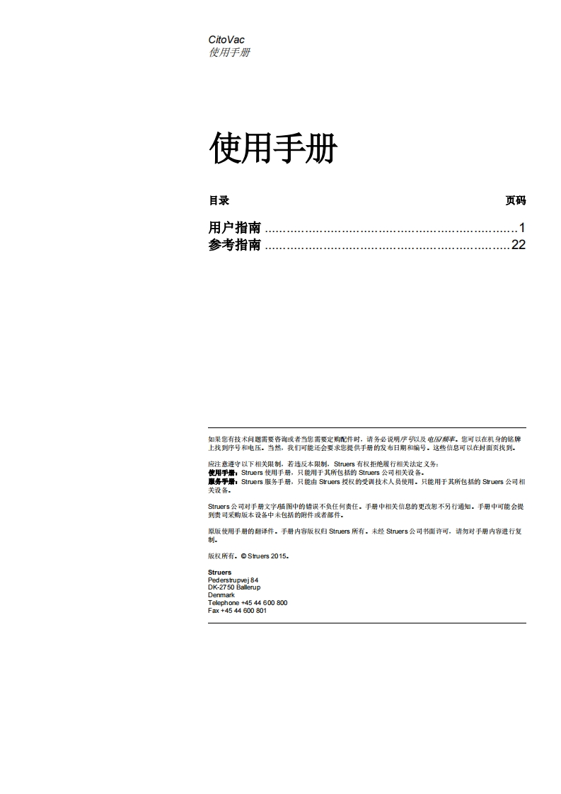 zh_CitoVac_安装操作说明书手册348072@abc6个月前发布关注私信1.17MB52页046zh_CitoVac_安装操作说明书手册此内容为付费资源,请付费后查看¥22¥33黄金会员免费钻石会员免费立即购买您当前未登录!建议登陆后购买,可保存购买订单付费资源 第1页 / 共52页 第2页 / 共52页 试读已结束,还剩50页,您可下载完整版后进行离线阅读 THE END说明书手册 文本预览 StruersCitoVac手册编号:15927001发行日期:27.102015使用手册 查看更多 收起部分 喜欢就支持一下吧收藏