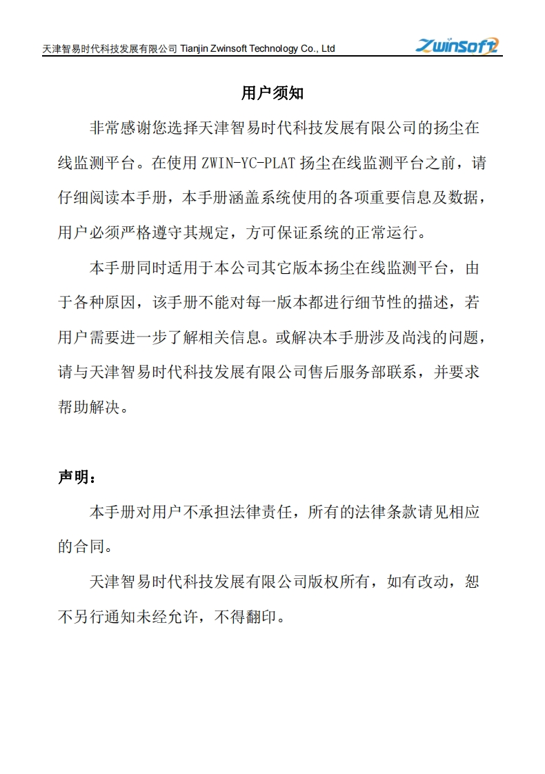 ZWIN-YC-PLAT扬尘在线监测平台说明书348072@abc6个月前发布关注私信1.07MB20页029ZWIN-YC-PLAT扬尘在线监测平台说明书此内容为付费资源,请付费后查看¥22¥33黄金会员免费钻石会员免费立即购买您当前未登录!建议登陆后购买,可保存购买订单付费资源 第1页 / 共20页 第2页 / 共20页 试读已结束,还剩18页,您可下载完整版后进行离线阅读 THE END说明书手册 文本预览 之uinsof2丑扬尘在线监测平台ZWIN-YC-PLAT产品说明书PRODUCT SPECIFICATION天津智易时代科技发展有限公司Tianjin Zwinsoft Technology Co.Ltd 查看更多 收起部分 喜欢就支持一下吧收藏