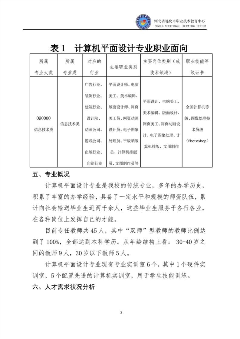 计算机平面设计专业人才培养方案2021修订版348072@abc4个月前发布关注私信3.25MB20页042计算机平面设计专业人才培养方案2021修订版此内容为付费资源,请付费后查看¥11¥20黄金会员免费钻石会员免费立即购买您当前未登录!建议登陆后购买,可保存购买订单付费资源 第1页 / 共20页 第2页 / 共20页 试读已结束,还剩18页,您可下载完整版后进行离线阅读 THE END活动策划 文本预览 河北省遊化市职业技术教育中心ZUNHUA VOCATIONAL EDUCATION CENTER计算机平面设计专业(中职)人才培养方案一、专业名称及代码专业名称:计算机平面设计专业代码:710210二、入学要求初中毕业生或具有同等学力者。三、修业年限3年四、职业面向 查看更多 收起部分 喜欢就支持一下吧收藏