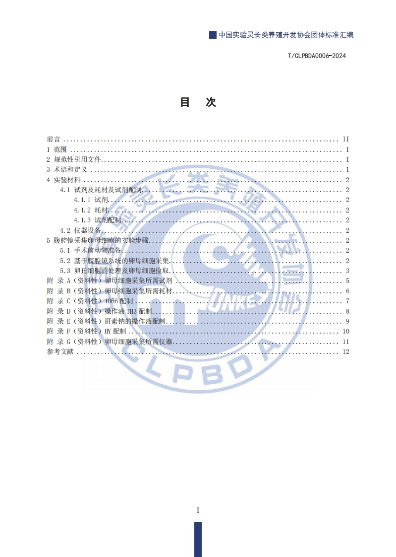 0006卵母细胞采集方法348072@abc4个月前发布关注私信1.55MB15页0300006卵母细胞采集方法此内容为付费资源,请付费后查看¥13¥33黄金会员免费钻石会员免费立即购买您当前未登录!建议登陆后购买,可保存购买订单付费资源 第1页 / 共15页 第2页 / 共15页 试读已结束,还剩13页,您可下载完整版后进行离线阅读 THE END标准规范 文本预览 中国实验灵长类养殖开发协会团体标准汇编■国实验灵长类美确开发的1993PBO中国实验灵长类养殖开发协会团体标准T/CLPBDA0006-2024类装食蟹猴/猕猴卵母细胞采集方法Cynomolgus macaque Rhesus macaque-The method of oocyte col lection2024-10-01发布2024-10-01实施中国实验灵长类养殖开发协会发布 查看更多 收起部分 喜欢就支持一下吧收藏