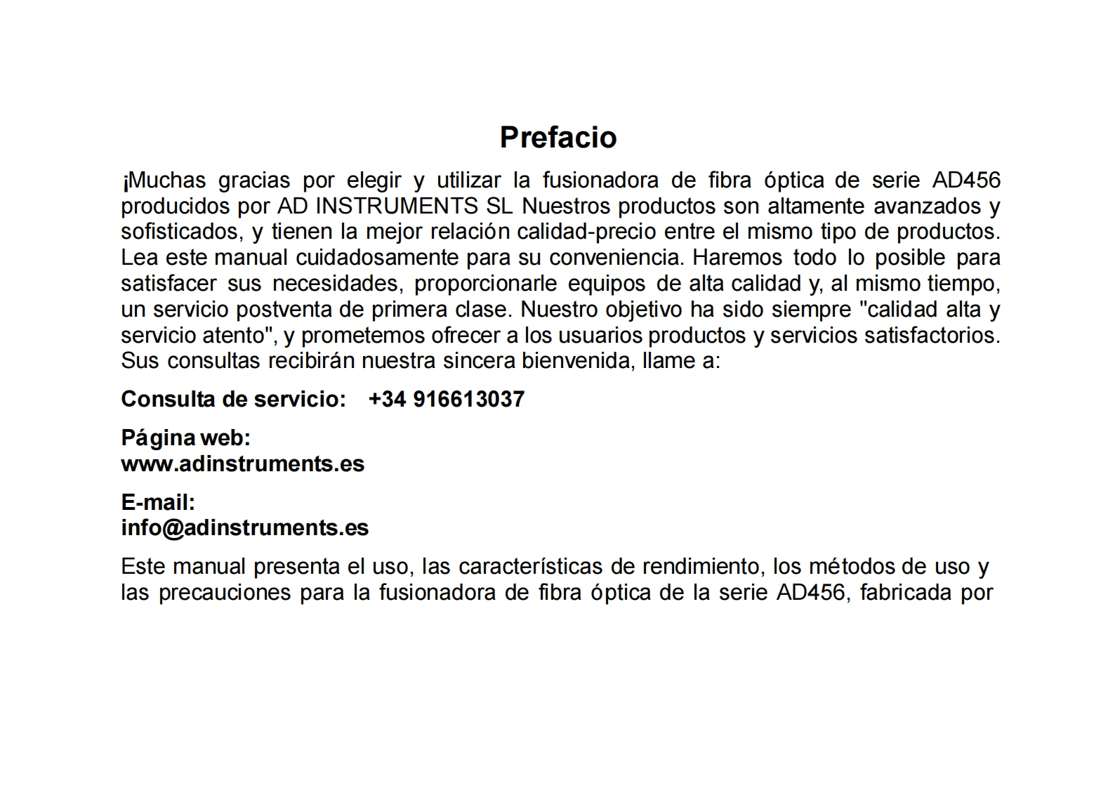 操作说明书手册_espanol_AD456348072@abc6个月前发布关注私信1.24MB128页023操作说明书手册_espanol_AD456此内容为付费资源,请付费后查看¥22¥33黄金会员免费钻石会员免费立即购买您当前未登录!建议登陆后购买,可保存购买订单付费资源 第1页 / 共128页 第2页 / 共128页 试读已结束,还剩126页,您可下载完整版后进行离线阅读 THE END说明书手册 文本预览 Fusionadora de fibra optica serieAD456 Manual deusuarioLea todas las instrucciones cuidadosamente antes de usar.Guarde este manual junto con la fusionadora 查看更多 收起部分 喜欢就支持一下吧收藏