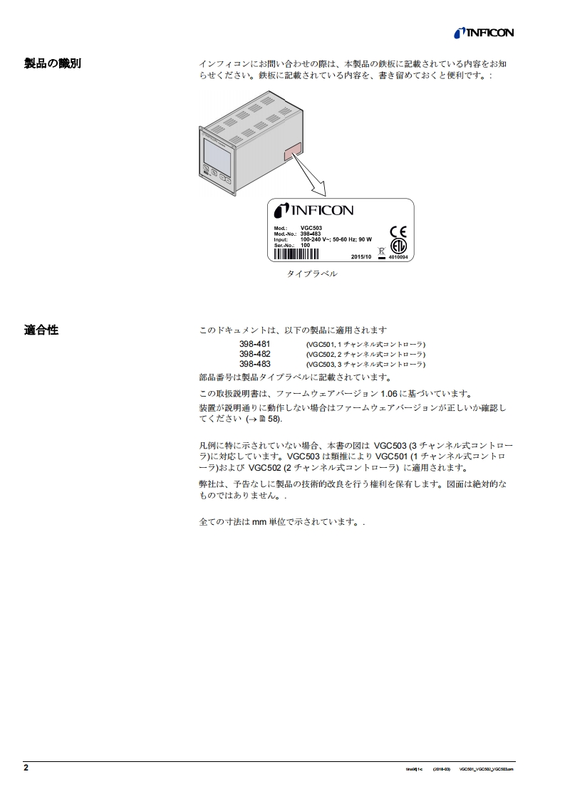 操作说明书手册VGC50x348072@abc6个月前发布关注私信3.66MB118页026操作说明书手册VGC50x此内容为付费资源,请付费后查看¥22¥33黄金会员免费钻石会员免费立即购买您当前未登录!建议登陆后购买,可保存购买订单付费资源 第1页 / 共118页 第2页 / 共118页 试读已结束,还剩116页,您可下载完整版后进行离线阅读 THE END说明书手册 文本预览 Operating ManualIncl.EU Declaration of ConformityINFICONSingle-Channel,Two-Channel Three-ChannelControl UnitsVGC501,VGC502,VGC503INFICON vacas盖西囚INFICON voosoa2▣®☑公④⊕⊙囚C€tina96j1-c(2018-031 查看更多 收起部分 喜欢就支持一下吧收藏