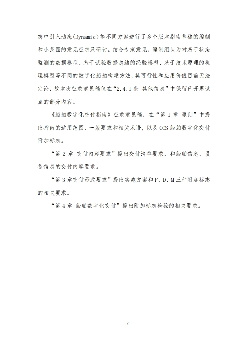 《船舶数字化交付指南》编写说明当前,新一轮科技革命和产业变革深入发展,数字化转型已经成为大势所趋。在船舶行业,数字化技术在船舶研发、设计、总装的应用,以及智慧航运、智能船舶等数字化战略持续推动着航运企业对数据要素和技术创新的需求。同时,传统的船舶资料交付普遍存在资料不全、质量不高、建造合同难以准确约定交付资料范围、难以将准确数据转化至船舶营运管理的信息系统等问题,航运企业对提高交船资料质量、提升资料使用便捷度、扩大资料覆盖范围有着迫切的需求。实施船舶数字化交付是解决上述问题的一种方式。船舶数字化交付工作旨在以数字化手段向船东完整、准确地移交船舶及船用产品数据,打通船舶设计、建造阶段与营运阶段的数据通道,为船舶的数字化运营提供数据基础。CCS“船舶数字化交付支撑技术研究和应用”项目于2023年4月立项。立项后,项目组对可能应用于交付的数字化技术进行了深入研究,调研了部分设计院所、船用产品厂、船厂、船东、技术公司的当前需求和未来可能的需求,并参考了石化、航空等行业的数字化交付案例。据此,项目组2023年底启动了本指南的编制工作。由于船舶行业的数字化交付尚处研究和试验阶段,如何评价不同技术路线的可行性和对船舶运营的应用价值是本指南编制面临的核心问题。在编制过程中,本指南先后以五级分类(同时按交付物覆盖范围、交付形式分级)、三级分类(主要按交付形式分级)、在附加标