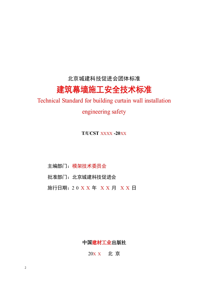 建筑幕墙施工安全技术标准(征求意见稿)348072@abc2个月前发布关注私信1.11MB53页0427建筑幕墙施工安全技术标准(征求意见稿)此内容为付费资源,请付费后查看¥13¥33黄金会员免费钻石会员免费立即购买您当前未登录!建议登陆后购买,可保存购买订单付费资源 第1页 / 共53页 第2页 / 共53页 试读已结束,还剩51页,您可下载完整版后进行离线阅读 © 版权声明文章版权归作者所有,未经允许请勿转载。THE END标准规范 文本预览 UDCUCST北京城建科技促进会团体标准PT/UCST XXXX -20XX建筑幕墙施工安全技术标准Technical Standard for building curtain wall installationengineering safety(征求意见稿)20XX-XX-XX发布20XX-XX-XX实施北京城建科技促进会发布 查看更多 收起部分 喜欢就支持一下吧点赞7 分享QQ空间微博QQ好友海报分享复制链接收藏
