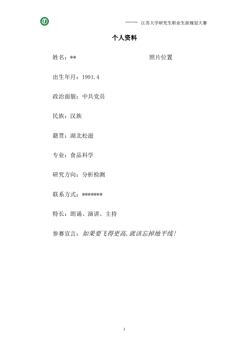 模版参考-食品某同学职业生涯规划书(不能照抄内容-可参考版式)348072@abc7个月前发布关注私信0.41MB22页047模版参考-食品某同学职业生涯规划书(不能照抄内容-可参考版式)此内容为付费资源,请付费后查看¥11¥20黄金会员免费钻石会员免费立即购买您当前未登录!建议登陆后购买,可保存购买订单付费资源 第1页 / 共22页 第2页 / 共22页 试读已结束,还剩20页,您可下载完整版后进行离线阅读 THE END活动策划 文本预览 江苏大学2013级研究生职业生涯规戏划书1902IANGSU UNIVERSITY题目:我的天空我做主学院:食品与生物工程学院专业班级:食品研**班学号:S***姓名:米*联系方式:米*米米**米米米米2014年3月 查看更多 收起部分 喜欢就支持一下吧收藏