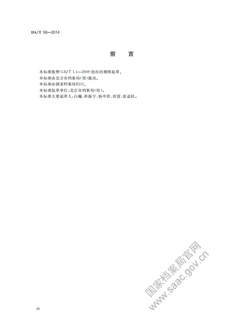 数码照片归档与管理规范348072@abc4个月前发布关注私信0.36MB7页041数码照片归档与管理规范此内容为付费资源,请付费后查看¥13¥33黄金会员免费钻石会员免费立即购买您当前未登录!建议登陆后购买,可保存购买订单付费资源 第1页 / 共7页 第2页 / 共7页 试读已结束,还剩5页,您可下载完整版后进行离线阅读 THE END标准规范 文本预览 1CS01.140.20A14备案号:48930一2015DA中华人民共和国档案行业标准DA/T50-2014数码照片归档与管理规范Specification for digital photos filing and management2014-12-31发布家档案局官网.。6SM国家档案局发9 查看更多 收起部分 喜欢就支持一下吧收藏