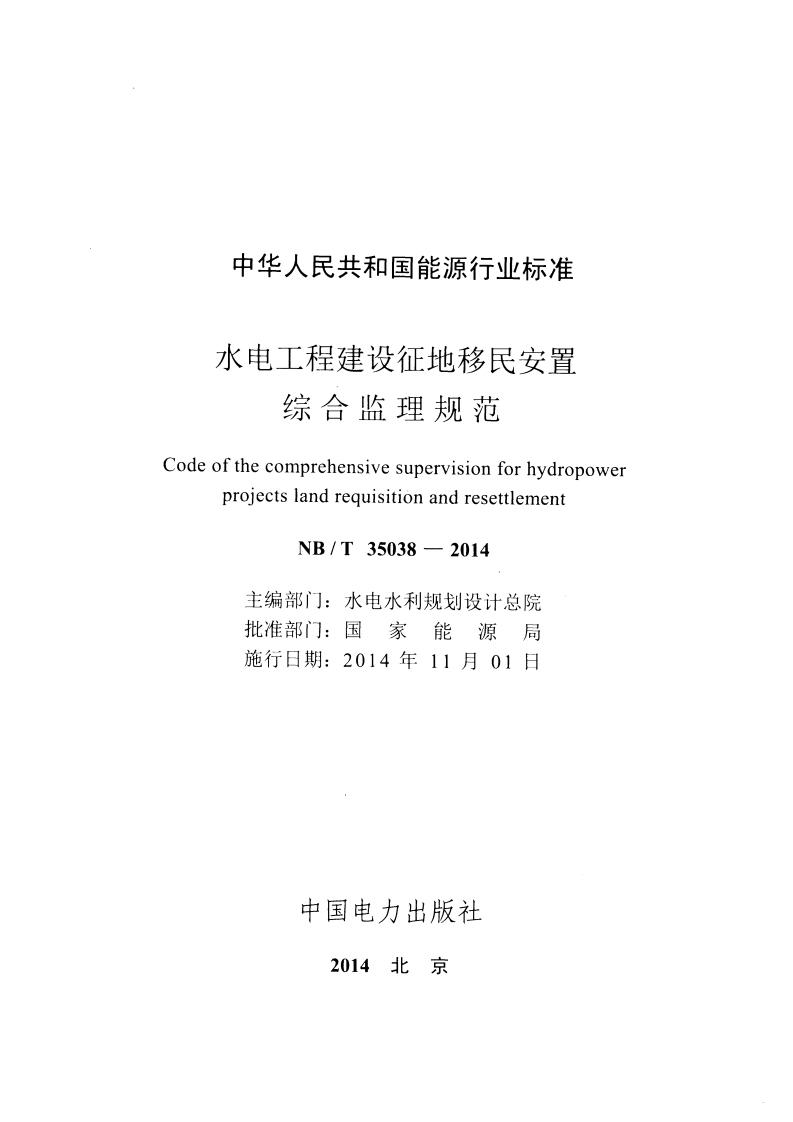 水电工程建设征地移民安置综合监理规范348072@abc4个月前发布关注私信4.14MB93页047水电工程建设征地移民安置综合监理规范此内容为付费资源,请付费后查看¥13¥33黄金会员免费钻石会员免费立即购买您当前未登录!建议登陆后购买,可保存购买订单付费资源 第1页 / 共93页 第2页 / 共93页 试读已结束,还剩91页,您可下载完整版后进行离线阅读 THE END标准规范 文本预览 ICS27.140P59备案号:J1897一2014NB中华人民共和国能源行业标准PNB/T35038一2014水电工程建设征地移民安置综合监理规范Code of the comprehensive supervision for hydropowerprojects land requisition and resettlement2014-06-29发布2014-11-01实施国家能源局发布 查看更多 收起部分 喜欢就支持一下吧收藏