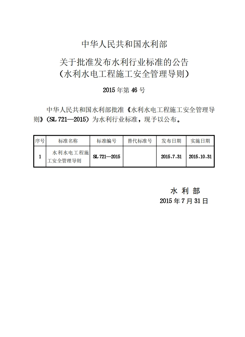 水利水电工程施工安全管理导则348072@abc2个月前发布关注私信2.56MB219页0305水利水电工程施工安全管理导则此内容为付费资源,请付费后查看¥13¥33黄金会员免费钻石会员免费立即购买您当前未登录!建议登陆后购买,可保存购买订单付费资源 第1页 / 共219页 第2页 / 共219页 试读已结束,还剩217页,您可下载完整版后进行离线阅读 © 版权声明文章版权归作者所有,未经允许请勿转载。THE END标准规范 文本预览 ICS27.140P55SL中华人民共和国水利行业标准SL7212015水利水电工程施工安全管理导则Guidelines for construction safety managementof water and hydropower projects2015-07-31发布2015-10-31实施中华人民共和国水利部发布 查看更多 收起部分 喜欢就支持一下吧点赞5 分享QQ空间微博QQ好友海报分享复制链接收藏