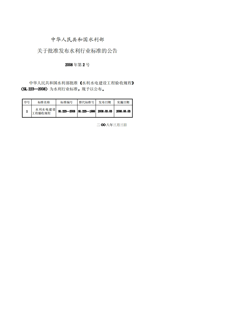 水利水电建设工程验收规程348072@abc2个月前发布关注私信0.58MB89页03514水利水电建设工程验收规程此内容为付费资源,请付费后查看¥13¥33黄金会员免费钻石会员免费立即购买您当前未登录!建议登陆后购买,可保存购买订单付费资源 第1页 / 共89页 第2页 / 共89页 试读已结束,还剩87页,您可下载完整版后进行离线阅读 © 版权声明文章版权归作者所有,未经允许请勿转载。THE END标准规范 文本预览 1Cs93.130P59SL中华人民共和国水利行业标准SL228一2008替代L223一19水利水电建设工程验收规程Acceptance code of practice on water resourcesand hydroelectric engineering2008-03-03发布200806-03实施中华人民共和国水利部发布 查看更多 收起部分 喜欢就支持一下吧点赞14 分享QQ空间微博QQ好友海报分享复制链接收藏