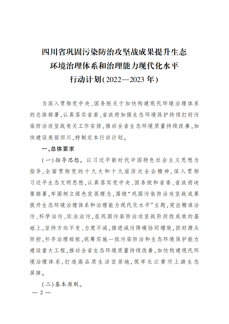 四川省巩固污染防治攻坚战成果提升生态环境治理体系和治理能力现代化水平行动计划(2022—2023年)348072@abc2个月前发布关注私信0.39MB12页02410四川省巩固污染防治攻坚战成果提升生态环境治理体系和治理能力现代化水平行动计划(2022—2023年)此内容为付费资源,请付费后查看¥13¥33黄金会员免费钻石会员免费立即购买您当前未登录!建议登陆后购买,可保存购买订单付费资源 第1页 / 共12页 第2页 / 共12页 试读已结束,还剩10页,您可下载完整版后进行离线阅读 © 版权声明文章版权归作者所有,未经允许请勿转载。THE END标准规范 文本预览 四川省人民政府办公厅关于印发四川省巩固污染防治攻坚战成果提升生态环境治理体系和治理能力现代化水平行动计划(2022一2023年)的通知川办发〔2021〕82号各市(州)、县(市、区)人民政府,省政府各部门、各直属机构,有关单位:《四川省巩固污染防治攻坚战成果提升生态环境治理体系和治理能力现代化水平行动计划(2022一2023年)》已经省政府同意,现印发给你们,请认真组织实施。四川省人民政府办公厅2021年12月23日一1 查看更多 收起部分 喜欢就支持一下吧点赞10 分享QQ空间微博QQ好友海报分享复制链接收藏