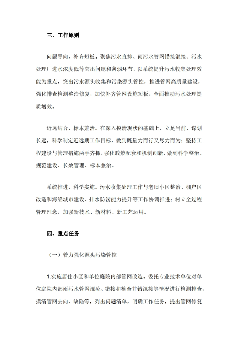 宿迁市城市生活污水集中收集处理率提升实施方案(2024-2025年)为进一步改善宿迁市城市水环境质量,加快补齐城市污水收集和处理设施短板,提升城市污水集中收集处理效能,持续提高人民群众获得感和幸福感,特制定本实施方案。一、总体要求以习近平新时代中国特色社会主义思想为指导,全面贯彻党的二十大精神,深入贯彻落实习近平生态文明思想和习近平总书记对江苏工作重要指示批示精神,完整、准确、全面贯彻新发展理念,聚焦生活污水收集处理效能不高、工业废水生活污水混合处理等突出问题,以管网全覆盖、污水全收集、能力全提升为目标导向,加快完善污水集中收集处理能力,为“四化”同步集成改革示范区建设和全面推进中国式现代化宿迁新实践作出新的更大贡献。二、工作目标2024年底,全市各县区城市生活污水集中收集处理率力争达到72%。2025年底,全市各县区城市生活污水集中收集处理率力争达到80%。城市生活污水处理设施能力基本满足生活污水处理需求,生活污水处理效能明显提升,城市市政雨污管网混错接改造取得明显成效。