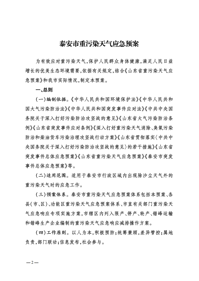 泰安市人民政府办公室泰政办字〔2023]30号泰安市人民政府办公室关于印发《泰安市重污染天气应急预案》的通知各县、市、区人民政府、各功能区管委会,市政府各部门、直属单位,省属以上驻泰各单位:《泰安市重污染天气应急预案》已经市政府同意,现印发给你们,请认真组织实施。《泰安市人民政府办公室关于印发泰安市重污染天气应急预案的通知》(泰政办字〔2020)]53号)同时停止执行。泰安市人民政府办公室2023年10月25日(此件公开发布)1