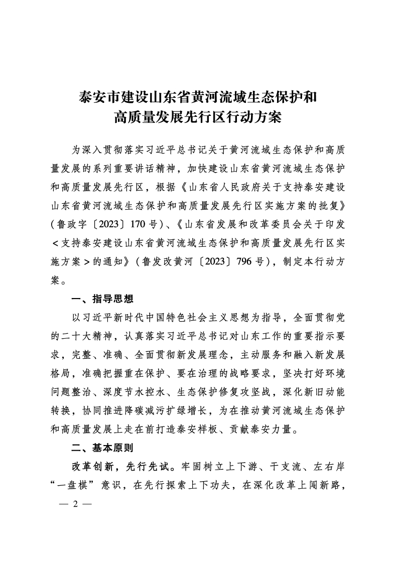 泰安市人民政府关于印发《泰安市建设山东省黄河流域生态保护和高质量发展先行区行动方案》的通知348072@abc4个月前发布关注私信2.20MB18页030泰安市人民政府关于印发《泰安市建设山东省黄河流域生态保护和高质量发展先行区行动方案》的通知此内容为付费资源,请付费后查看¥13¥33黄金会员免费钻石会员免费立即购买您当前未登录!建议登陆后购买,可保存购买订单付费资源 第1页 / 共18页 第2页 / 共18页 试读已结束,还剩16页,您可下载完整版后进行离线阅读 THE END标准规范 文本预览 泰安市人民政府泰政发〔2023〕10号泰安市人民政府关于印发《泰安市建设山东省黄河流域生态保护和高质量发展先行区行动方案》的通知各县、市、区人民政府,各功能区管委会,市政府各部门、直属单位,省属以上驻泰各单位:现将《泰安市建设山东省黄河流域生态保护和高质量发展先行区行动方案》印发给你们,请认真抓好贯彻落实。泰安市人民政府2023年11月16日(此件公开发布)—1 查看更多 收起部分 喜欢就支持一下吧收藏