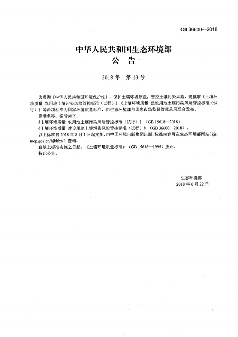 土壤环境质量-建设用地土壤污染风险管控标准(试行)348072@abc4个月前发布关注私信7MB18页025土壤环境质量-建设用地土壤污染风险管控标准(试行)此内容为付费资源,请付费后查看¥13¥33黄金会员免费钻石会员免费立即购买您当前未登录!建议登陆后购买,可保存购买订单付费资源 第1页 / 共18页 第2页 / 共18页 试读已结束,还剩16页,您可下载完整版后进行离线阅读 THE END标准规范 文本预览 ICS13.080Z64GB中华人民共和国国家标准GB36600-2018土壤环境质量建设用地土壤污染风险管控标准(试行)Soil environmental quality-Risk control standard for soil contamination of development land2018-06-22发布2018-08-01实施生态环境邵国家市场监臀管理总局发布 查看更多 收起部分 喜欢就支持一下吧收藏