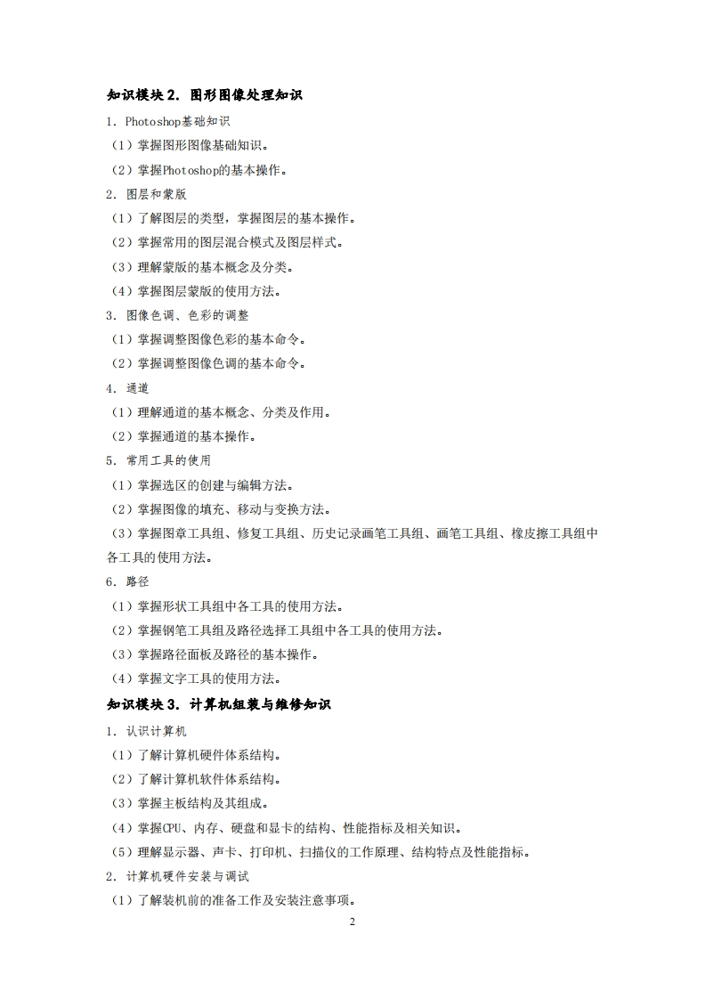 网络技术类专业知识考试标准一、考试范围和要求知识模块1.网络技术知识1.数据通信基础(1)了解数据通信的基本概念。(2)掌握数据通信方式和传输方式。(3)了解数据交换技术。2.网络技术基础(1)掌握计算机网络的拓扑结构。(2)了解0SI参考模型的结构及各层的主要功能。(3)掌握数据传输控制方式。(4)了解常见的局域网标准。(5)掌握TCP/IP网络协议.。3.结构化布线系统(1)理解结构化布线系统的组成。(2)掌握双绞线、光纤的应用。4.计算机网络设备(1)掌握网卡、集线器、交换机、路由器的相关知识。(2)了解网桥、中继器的相关知识。5.Internet基础(1)了解Internet的特点和组成。(2)了解Interet的主要功能。(3)掌握P地址的含义、分类以及子网掩码的作用。(4)理解Internet的域名服务。(5)了解Internet的接入方式。6.网络安全与管理(1)了解网络安全和网络管理的功能。(2)了解网络资源管理方法及网络管理协议。(3)了解黑客入侵的防范及防火墙的概念和分类。7.局域网的组建(1)掌握中小型办公局域网的组建。(2)理解无线局域网的相关概念。(3)掌握无线路由器的配置方法。