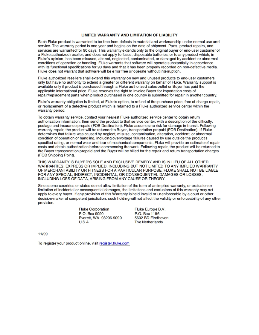 =LLKE。87 V/ANDigital MultimeterService ManualLimited permission for the U.S.Government to reproduce FlukeItem #2153596 is provided pursuant to FAR 52.227.14 Alt.Il.PN2153596July 20042004 Fluke Corporation,All rights reserved.Printed in USAAll product names are trademarks of their respective companies