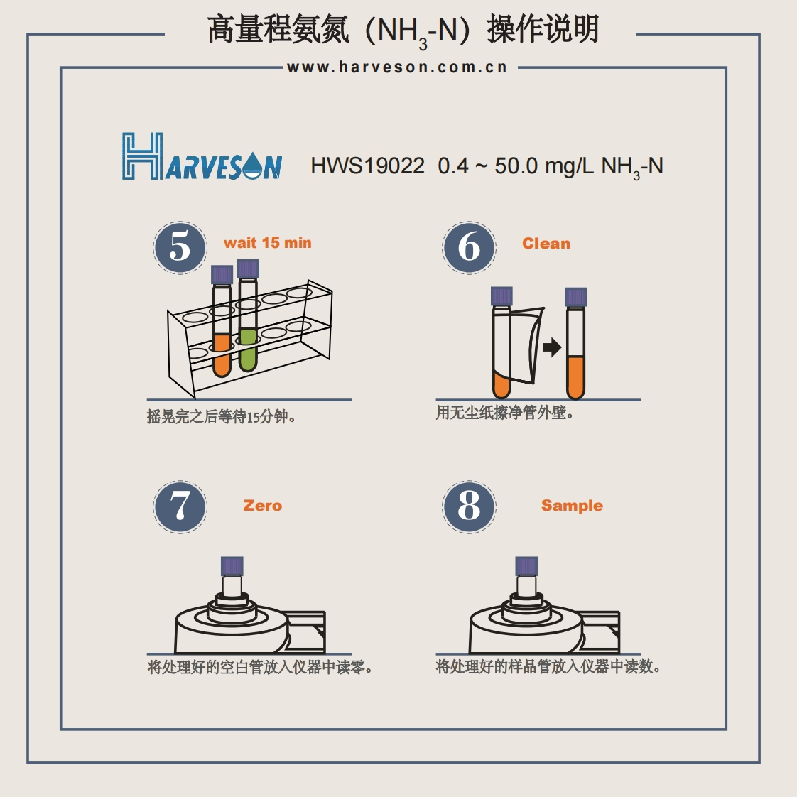 高量程氨氮(NH3-N)操作说明348072@abc6个月前发布关注私信1.13MB2页038高量程氨氮(NH3-N)操作说明此内容为付费资源,请付费后查看¥16¥23黄金会员免费钻石会员免费立即购买您当前未登录!建议登陆后购买,可保存购买订单付费资源 第1页 / 共2页 第2页 / 共2页 已完成全部阅读,共2页 THE END说明书手册 文本预览 高量程氨氮(NH,-N)操作说明www.harveson.com.cnHARVESANHWS190220.4~50.0mg/LNH3-N0.1mL2NH3-N(HR)(I)取出2支氨氮预制管,其中一支加对已加入空白和水样的试管中分别0.1mL超纯水作为空白值,另一支加入一包氨氮HR)①粉包并等待2加o.1mL待测水样。分钟。3NH3-N(HR)(II)Shake再向空白和水样的试管中分别加入摇晃试管使粉末溶解。一包氨氮HR)四粉包。 查看更多 收起部分 喜欢就支持一下吧收藏