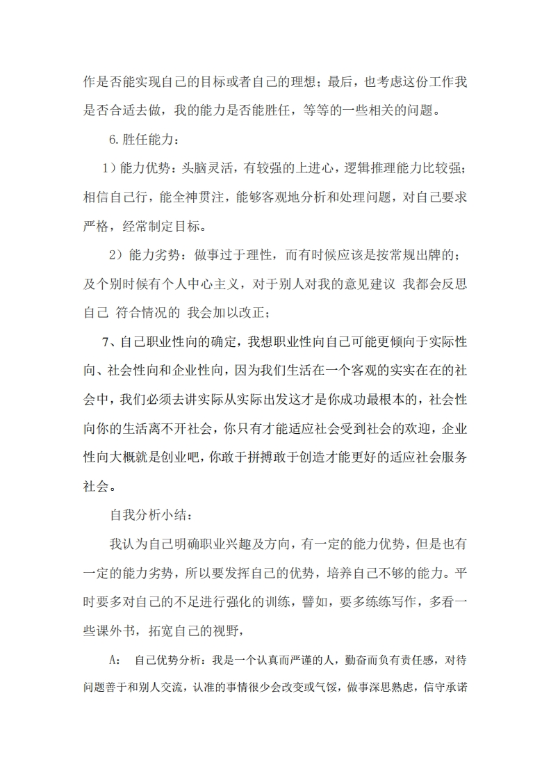 职业生涯规划论文前言:现在社是一会个经济迅速发展的社会,也是一个充满竞争的社会,提前做好自己的规划对我们更好的适应社会打下基础,作为新时代的大学生,就应该对社会有一个清醒的认识,对现在的就业形式,社会的的政治环境、经济环境、文化环境等等,对自己的性格能力都应有清醒的认识,只有这样我们才能更好适应社会,为社会做出更大的贡献,更好的实现自己的人生价值。二、职业生涯目标的确立:通过对自己才能、性格、兴趣爱好、潜能等等,以及现在的社会、经济、政治、文化环境的分析,我开始对自己以后的职业生涯有了一些规划。自己打算利用自己丰富的知识,在努力学习.…方面的知识,并争取将来从事与平面设计有关的工作。三自我认识:通过人才测评分析结果以及本人对自己的认识、朋友对我的评价,我认真的认知了自己。1、我的兴趣爱好:自己的性格有时候比较活泼开朗,有时候又比较内向,喜欢和同学交流:喜欢听歌,但不会唱歌:还是比较喜欢运动,比如跑步球类都还挺喜欢的,但对于舞蹈不感冒:平时上上网啊,看看电影:对于学习,自我认为一直都很比较积极2、我的性格是具有双重性的,在做事方面有时很马虎比较的轻率,有时存在一定的惰性,在理智中又存在着盲目。现在来到学校我想主动的观察已经代替了过去在高中的那种被动的接受,自己在清醒的面对现实时又多少带有一种脱离实际的幻想。在以后的学习工作中,我要努力改进自己的不足发扬自己的长处,让自己变的更优秀。3、自己在学习上有点马虎不认真,造成学习成绩的不理想,以后这方面应该积极的改进,在以后我将以积极的态度努力学习,争取以优异的成绩完成学业。4、自我的潜能的分析,我想每个人都有自己的潜能,只是发挥没发挥出来的问题,5.职业价值观:基于家庭条件,首先考虑待遇较高的工作,对所选择的职业要有能从中不断学习并获得新知识的机会;当然,如果没有工资收入限制,我会先考虑自己最喜欢的工作,同时考虑这份工