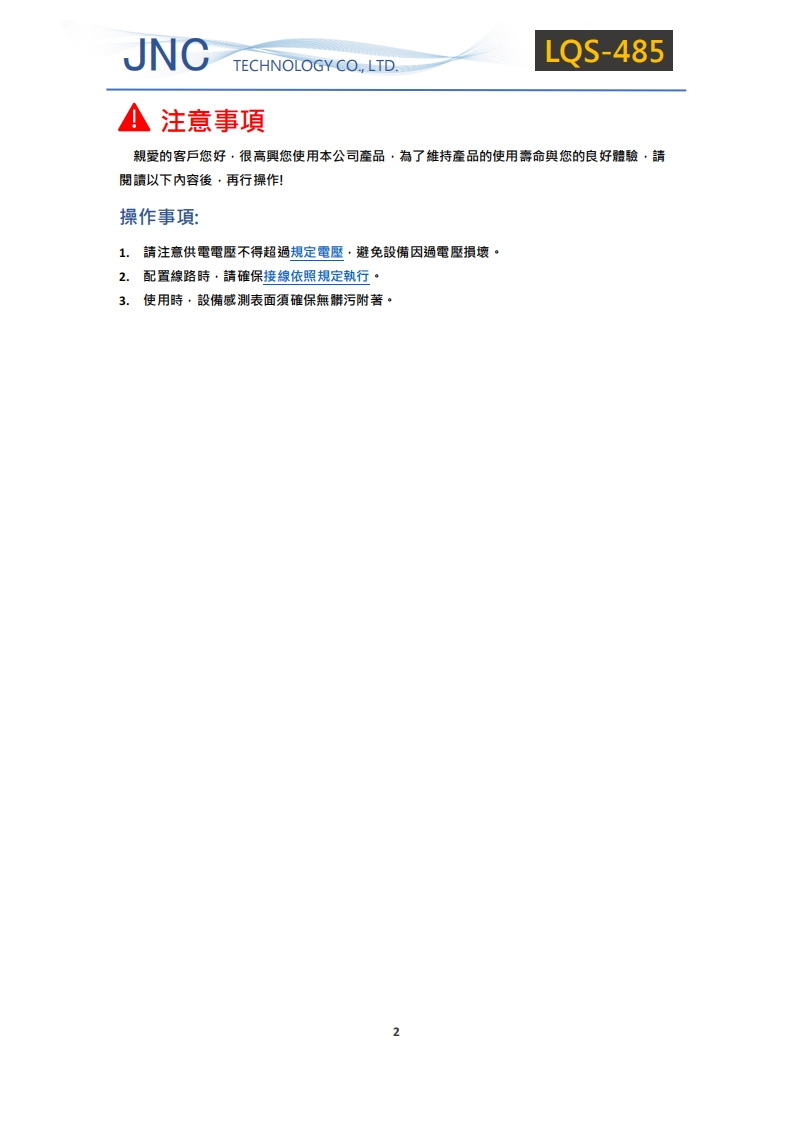 -光量子感測器(LQS485)v1.0020241030083847使用说明书手册348072@abc6个月前发布关注私信2.83MB11页036-光量子感測器(LQS485)v1.0020241030083847使用说明书手册此内容为付费资源,请付费后查看¥16¥23黄金会员免费钻石会员免费立即购买您当前未登录!建议登陆后购买,可保存购买订单付费资源 第1页 / 共11页 第2页 / 共11页 试读已结束,还剩9页,您可下载完整版后进行离线阅读 THE END说明书手册 文本预览 JNC铭样科枝實黛股份有限公司JNC光量子感測器Light quantum sensorJNC光量子感測器装:LQs-485站蹴:76:RS485量測範圍:0-颜色配線功能RED(红)BLACK(黑)DC 12VGNDNHTE(白)GREEN(绿)RS-485 D+RS-485 D.V1.00 查看更多 收起部分 喜欢就支持一下吧收藏
