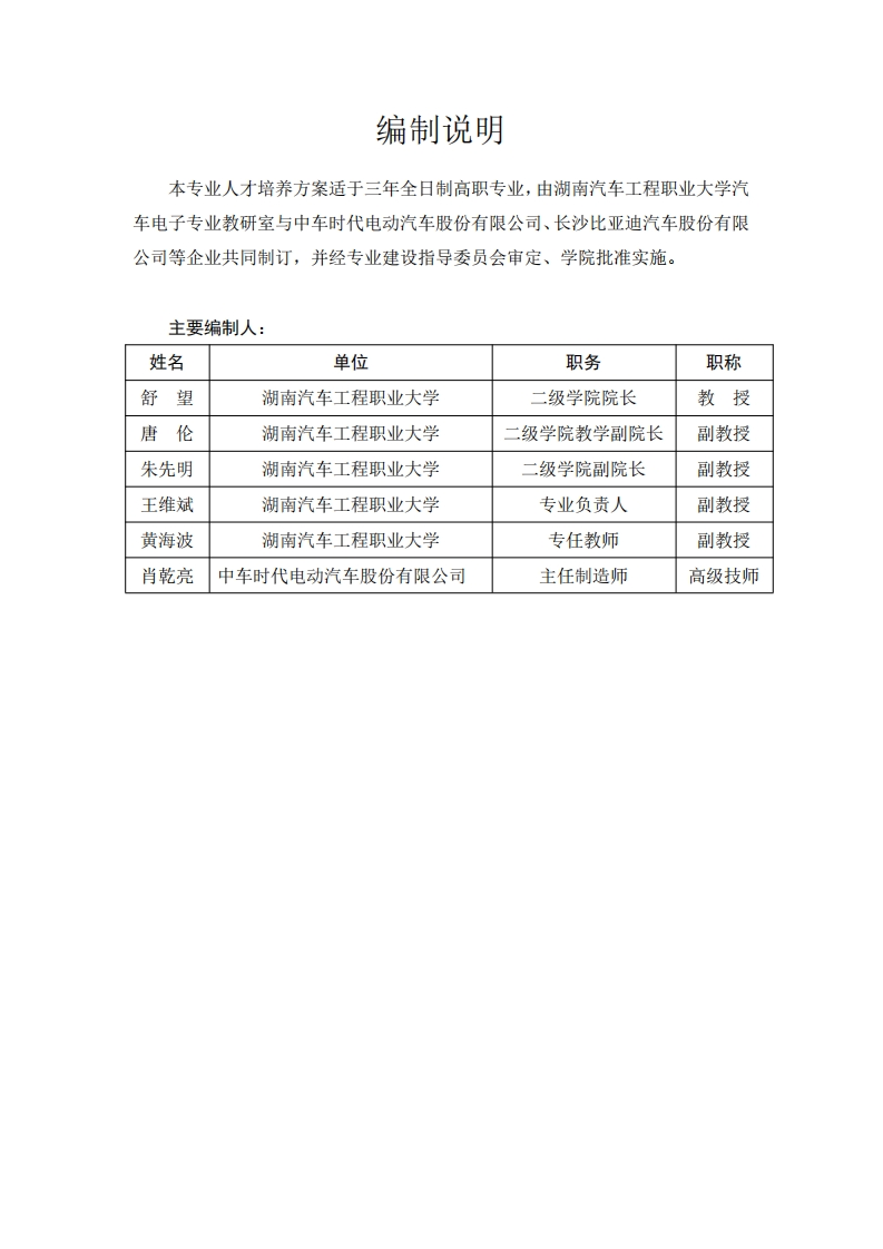 汽车电子技术专业人才培养方案348072@abc4个月前发布关注私信2.50MB65页048汽车电子技术专业人才培养方案此内容为付费资源,请付费后查看¥13¥22黄金会员免费钻石会员免费立即购买您当前未登录!建议登陆后购买,可保存购买订单付费资源 第1页 / 共65页 第2页 / 共65页 试读已结束,还剩63页,您可下载完整版后进行离线阅读 THE END规章制度 文本预览 包陶有汽事上行俄常大学HUNAN AUTOMOTIVE ENGINEERING VOCATIONAL UNIVERSITY汽车电子技术专业人才培养方案专业名称:汽车电子技术专业代码:460703适用年级:2024级专业负责人:王维斌制订时间:2024.06 查看更多 收起部分 喜欢就支持一下吧收藏