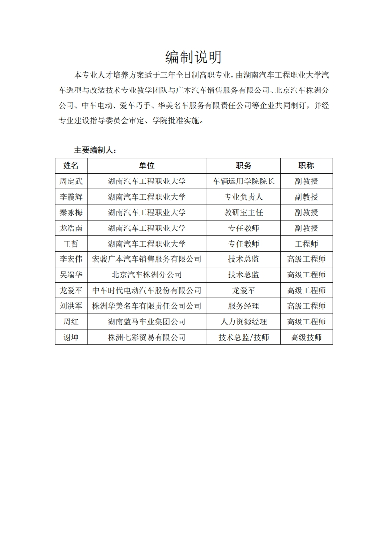 汽车造型与改装技术专业人才培养方案348072@abc4个月前发布关注私信2.22MB64页023汽车造型与改装技术专业人才培养方案此内容为付费资源,请付费后查看¥13¥22黄金会员免费钻石会员免费立即购买您当前未登录!建议登陆后购买,可保存购买订单付费资源 第1页 / 共64页 第2页 / 共64页 试读已结束,还剩62页,您可下载完整版后进行离线阅读 THE END规章制度 文本预览 @烟有汽事上行陈常大学HUNAN AUTOMOTIVE ENGINEERING VOCATIONAL UNIVERSITY汽车造型与改装技术专业人才培养方案专业名称:汽车造型与改装技术专业代码:460705适用年级:2024级专业负责人:李霞辉制订时间:2024年6月 查看更多 收起部分 喜欢就支持一下吧收藏