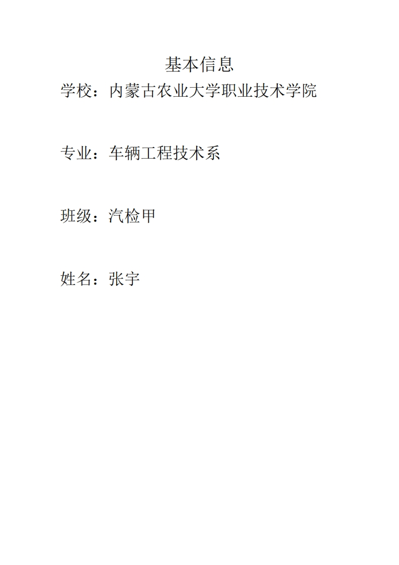 汽车专业职业生涯规划书[1]348072@abc4个月前发布关注私信0.13MB8页021汽车专业职业生涯规划书[1]此内容为付费资源,请付费后查看¥13¥22黄金会员免费钻石会员免费立即购买您当前未登录!建议登陆后购买,可保存购买订单付费资源 第1页 / 共8页 第2页 / 共8页 试读已结束,还剩6页,您可下载完整版后进行离线阅读 THE END规章制度 文本预览 大学生职业生涯规划书学校:内蒙古农业大学职业技术学院系别:车辆工程技术系班级:16汽检甲姓名:张宇 查看更多 收起部分 喜欢就支持一下吧收藏