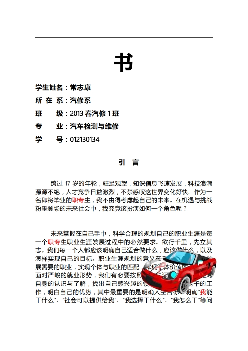 汽修专业-职业规划书348072@abc4个月前发布关注私信0.43MB13页023汽修专业-职业规划书此内容为付费资源,请付费后查看¥13¥22黄金会员免费钻石会员免费立即购买您当前未登录!建议登陆后购买,可保存购买订单付费资源 第1页 / 共13页 第2页 / 共13页 试读已结束,还剩11页,您可下载完整版后进行离线阅读 THE END规章制度 文本预览 职业生涯规划 查看更多 收起部分 喜欢就支持一下吧收藏