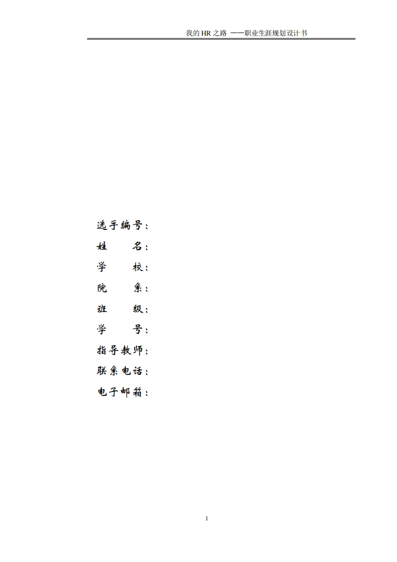 人力资源管理专业职业生涯规划书348072@abc4个月前发布关注私信0.49MB16页028人力资源管理专业职业生涯规划书此内容为付费资源,请付费后查看¥13¥22黄金会员免费钻石会员免费立即购买您当前未登录!建议登陆后购买,可保存购买订单付费资源 第1页 / 共16页 第2页 / 共16页 试读已结束,还剩14页,您可下载完整版后进行离线阅读 THE END规章制度 文本预览 路师花学除FUYANG®SHIFAN XUEYUAN第五届“和泰杯”大学生职业规划设计大赛我的HR总监之路职业生液视划设计书 查看更多 收起部分 喜欢就支持一下吧收藏