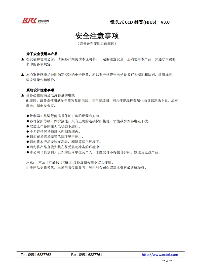 〖尺《Q尔技镜头式cCD测宽(BUS)V3.0KR☒贝尔利科技BRL Technology镜头式CCD测宽(FBUS)产品说明书V3.0适配控制器型号为SPR0320Si-CCD-W-ENT/SPR0320Si-CCD-W-CC/SPR0320Si-CCD-W-DP/SPR0320Si-CCD-W-00s8a8888地址:银川市金凤工业集中区四号路北段电话:0951-6887762传真:0951-6887761网址:http:/www.nxbrl.comTel:0951-6887762Fax:0951-6887761http://www.nxbrl.com1