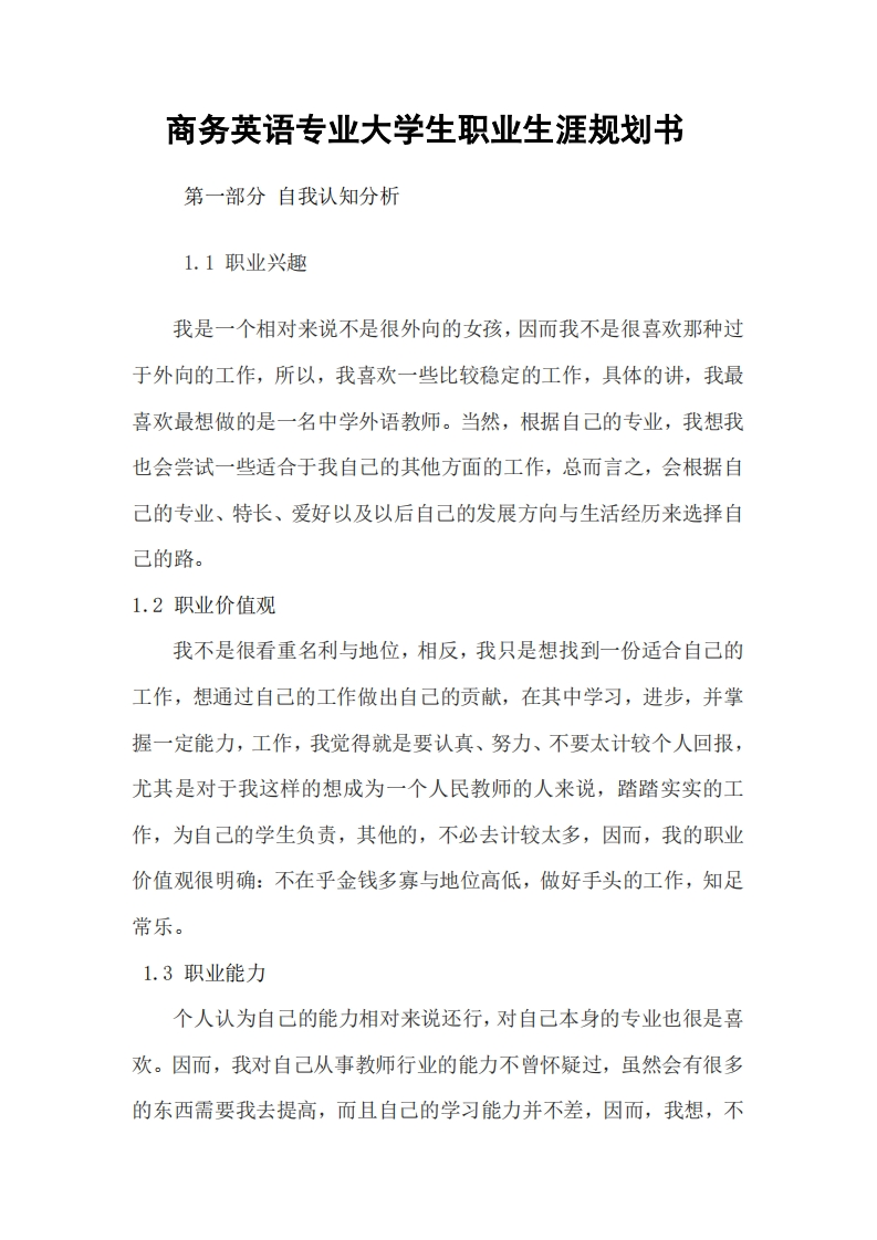 商务英语专业大学生职业生涯规划书-(1)348072@abc4个月前发布关注私信0.19MB8页038商务英语专业大学生职业生涯规划书-(1)此内容为付费资源,请付费后查看¥13¥22黄金会员免费钻石会员免费立即购买您当前未登录!建议登陆后购买,可保存购买订单付费资源 第1页 / 共8页 第2页 / 共8页 试读已结束,还剩6页,您可下载完整版后进行离线阅读 THE END规章制度 文本预览 商务英语职业生涯规划书姓名刘红蕾学号20134248性别女学院外国语学院专业商务英语年级2013级联系电话13079516842E-mail1454238914@gg.com 查看更多 收起部分 喜欢就支持一下吧收藏
