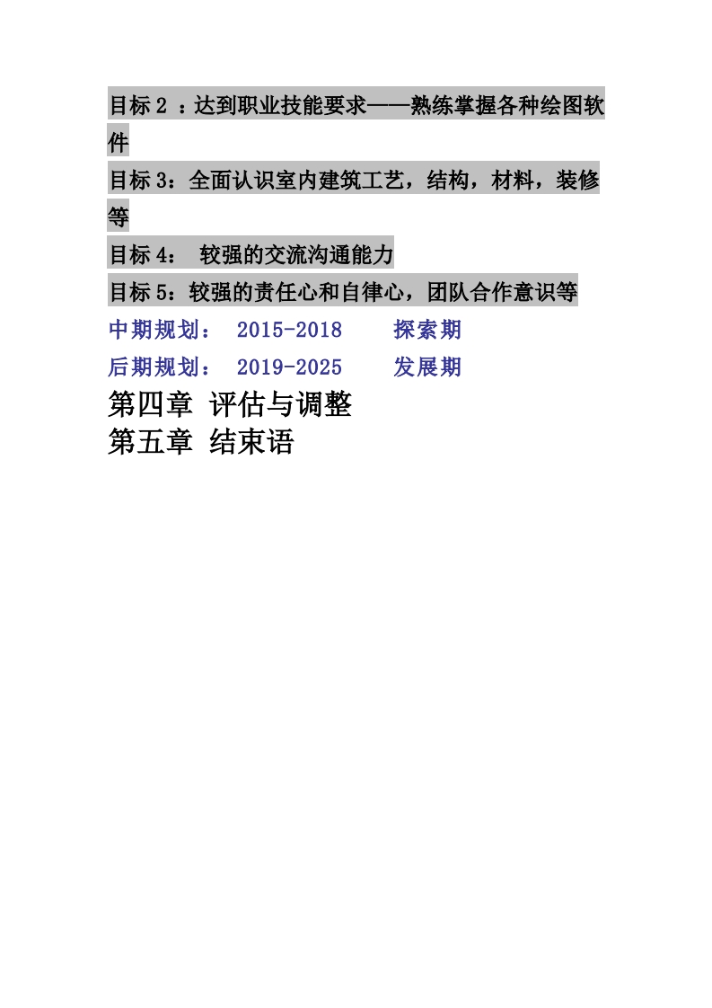 设计室内设计专业职业生涯规划书Word文档348072@abc2个月前发布关注私信0.23MB15页0338设计室内设计专业职业生涯规划书Word文档此内容为付费资源,请付费后查看¥13¥22黄金会员免费钻石会员免费立即购买您当前未登录!建议登陆后购买,可保存购买订单付费资源 第1页 / 共15页 第2页 / 共15页 试读已结束,还剩13页,您可下载完整版后进行离线阅读 © 版权声明文章版权归作者所有,未经允许请勿转载。THE END规章制度 文本预览 目录总论(引言)第一章认识自我1、个人基本情况2、职业兴趣3、职业能力及适应性4、个人特质5、职业价值观自我分析小结:第二章职业目标及职业认知1、职业目标2、职业生涯条件分析(1)家庭环境分析(2)社会环境分析(3)职业环境分析职业生涯条件分析小结第三章职业目标与路径前期规划:2011-2014学习期目标1:达到职业学历要求一一本科及以上学历1.短期规划(近大一到大三期间)2.中期规划(大四到读研究生时期) 查看更多 收起部分 喜欢就支持一下吧点赞8 分享QQ空间微博QQ好友海报分享复制链接收藏