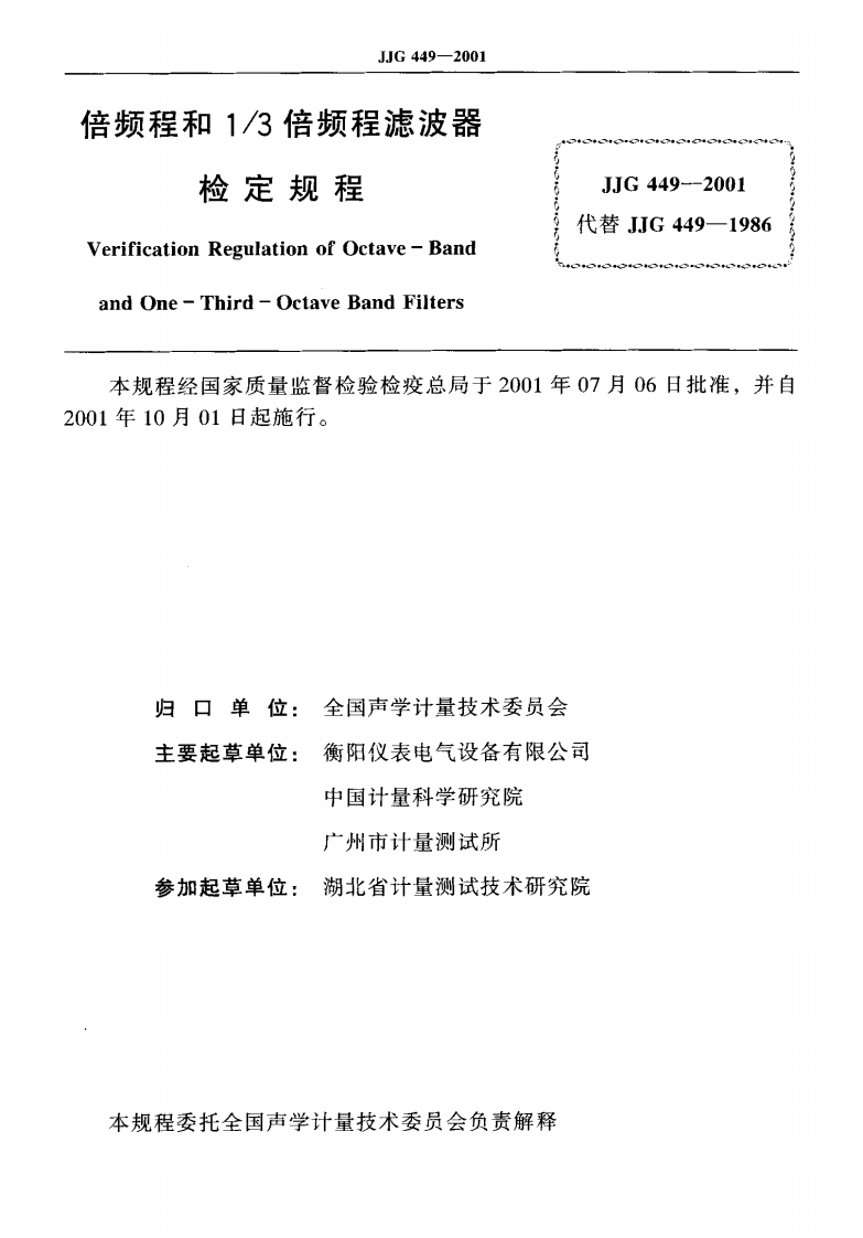 JJG449-2001倍频程和1-3倍频程滤波器348072@abc5个月前发布关注私信1.12MB46页038JJG449-2001倍频程和1-3倍频程滤波器此内容为付费资源,请付费后查看¥17¥22黄金会员免费钻石会员免费立即购买您当前未登录!建议登陆后购买,可保存购买订单付费资源 第1页 / 共46页 第2页 / 共46页 试读已结束,还剩44页,您可下载完整版后进行离线阅读 THE END标准规范 文本预览 可G中华人民共和国国家计量检定规程JJG449一2001倍频程和13倍频程滤波器Octave-Band and One-Third-Octave Band Filters2001-07-06发布2001一10-01实施国家质量监督检验检疫总局发布 查看更多 收起部分 喜欢就支持一下吧收藏