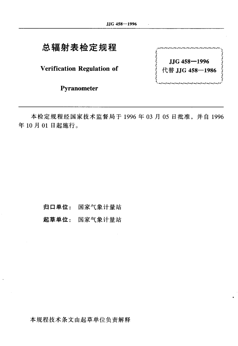 JJG458-1996总辐射表348072@abc5个月前发布关注私信0.46MB19页029JJG458-1996总辐射表此内容为付费资源,请付费后查看¥17¥22黄金会员免费钻石会员免费立即购买您当前未登录!建议登陆后购买,可保存购买订单付费资源 第1页 / 共19页 第2页 / 共19页 试读已结束,还剩17页,您可下载完整版后进行离线阅读 THE END标准规范 文本预览 过可G中华人民共和国国家计量检定规程JJG458一1996总辐射表Pyranometer1996-03-05发布1996-10-01实施国家技术监督局发布 查看更多 收起部分 喜欢就支持一下吧收藏