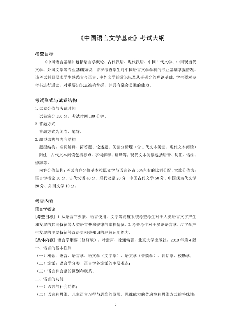 硕士研究生入学考试大纲-630中国语言文学基础考试大纲348072@abc3个月前发布关注私信0.10MB17页025硕士研究生入学考试大纲-630中国语言文学基础考试大纲此内容为付费资源,请付费后查看¥13¥22黄金会员免费钻石会员免费立即购买您当前未登录!建议登陆后购买,可保存购买订单付费资源 第1页 / 共17页 第2页 / 共17页 试读已结束,还剩15页,您可下载完整版后进行离线阅读 THE END规章制度 文本预览 中国语言文学一级学科硕士研究生入学考试《中国语言文学基础》考试大纲目录考查目标.....考试形式与试卷结构..….2考查内容....题型示例及参考答案.. 查看更多 收起部分 喜欢就支持一下吧收藏
