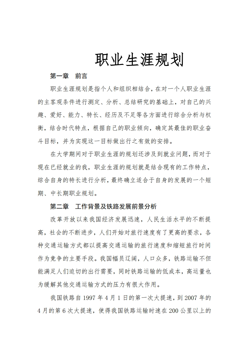 铁路职工职业生涯规划348072@abc4个月前发布关注私信0.30MB7页047铁路职工职业生涯规划此内容为付费资源,请付费后查看¥13¥22黄金会员免费钻石会员免费立即购买您当前未登录!建议登陆后购买,可保存购买订单付费资源 第1页 / 共7页 第2页 / 共7页 试读已结束,还剩5页,您可下载完整版后进行离线阅读 THE END规章制度 文本预览 职业生涯规划姓名:雷雨单位:贵阳市机务段2013年9月20日 查看更多 收起部分 喜欢就支持一下吧收藏